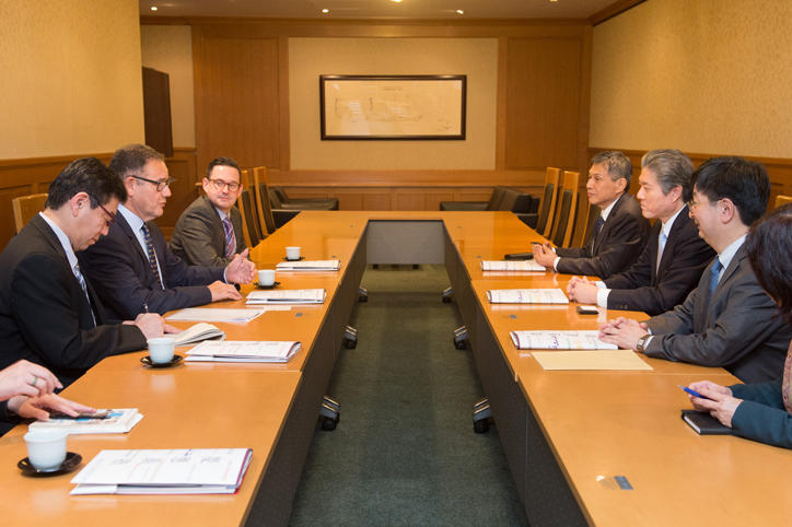講演後、ロドリゲス氏は、ブリティッシュ・カウンシル駐日代表マット・バーニー氏、同教育推進・連携部長の高橋知佳氏と共に、長谷山塾長、國領常任理事、渡部常任理事と懇談し、今後も両者の連携を深めていくことを確認しました。慶應義塾大学は、英国の多くの機関や大学と緊密な交流がありますが、11月にはロンドンにて、ブリティッシュ・カウンシルとの共催で、今年で7回目となる英国の学生向けの日本留学フェア、Experience Japan Exhibition 2017 を行います。ロドリゲス氏は英国オリンピック委員会の委員でもありますが、日吉キャンパスでは、横浜市、川崎市とともに、東京2020大会における英国オリンピック代表チームの事前キャンプの受け入れに向けて現在準備を進めているところです。