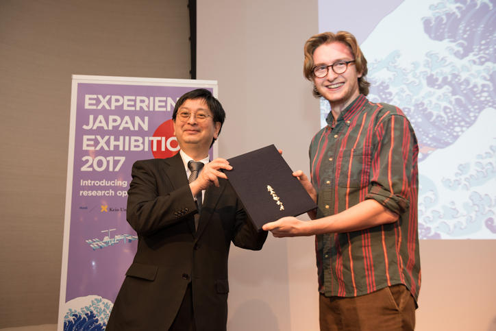 今年も、協賛企業から来場者1名へのロンドン東京間の往復航空券がプレゼントとして用意され、当選者には國領常任理事から目録が手渡されました。
