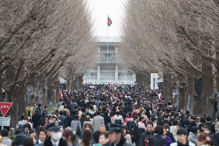 当日の日吉キャンパスは春らしい穏やかな天気のもと、家族や友人と記念撮影をする卒業生で溢れ、それぞれの門出を祝う華やかな雰囲気に包まれました。