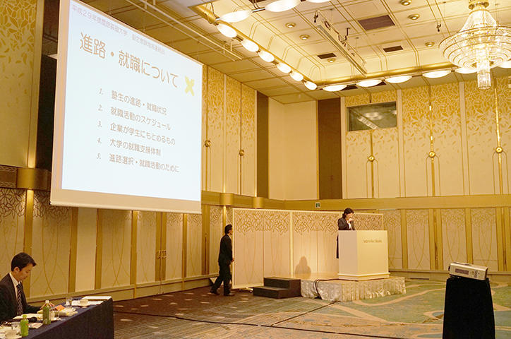 慶應義塾大学では、首都圏(東京、神奈川、千葉、埼玉)以外に在住の塾生の家族、保証人のもとに大学関係者が直接出向き、大学の近況をはじめ、塾生の学習・学生生活・進路等について説明する「大学塾生家族地域連絡会」を、原則として毎年、各地域で開催しています。この連絡会は、1963年に始まり、慶應義塾および学生生活への理解をさらに深めていただく良い機会として好評をいただいています。