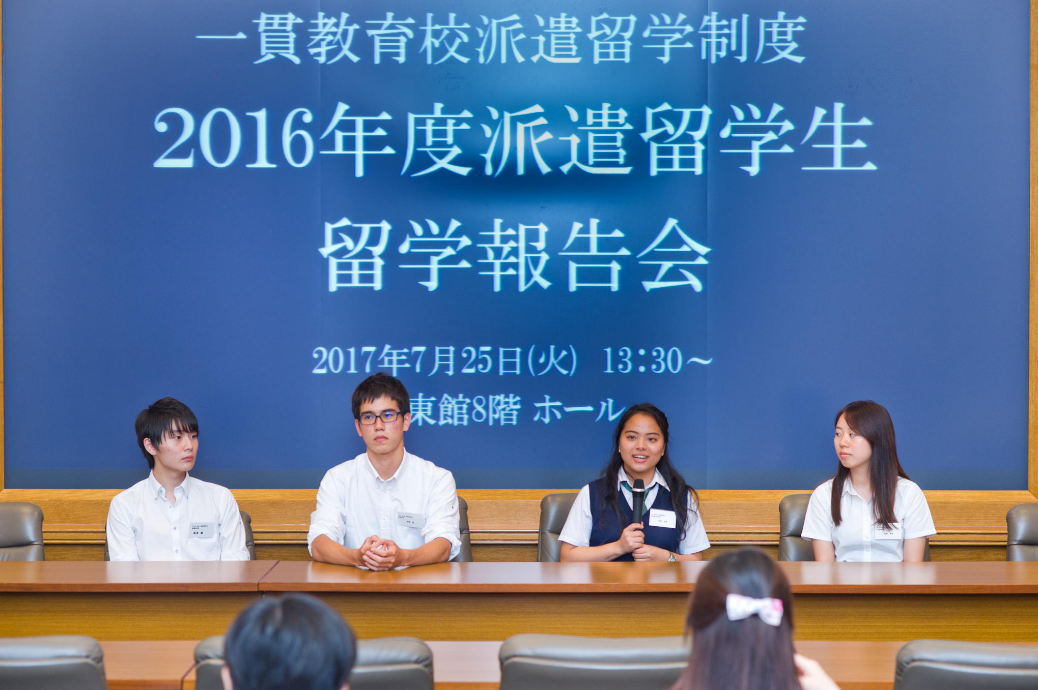 7月25日(火)、三田キャンパス東館にて、慶應義塾一貫教育校派遣留学制度による2016年度派遣留学生の留学報告会が開催されました。