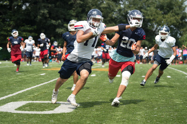 日吉キャンパスの蝮(まむし)谷には体育館や野球場、アメリカンフットボール場、テニスコートなど多くの体育施設があり、慶應義塾体育会のさまざまな部が日々練習に励んでいます。