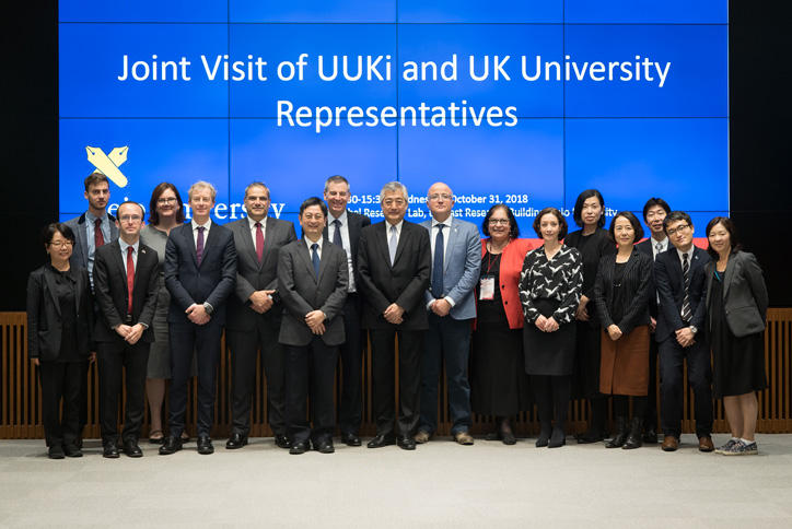 10月31日(水)、英国大学協会および英国の大学の代表者ら総勢13名が三田キャンパスを訪れました。小尾晋之介国際センター所長による慶應義塾の国際展開についてのプレゼンテーションに続き、國領二郎常任理事の司会によるQ&Aセッションを実施し、日英両国の大学の教育・研究の促進について、活発な議論が交わされました。また、慶應義塾大学が2020年に英国代表チームの事前キャンプを受け入れることを踏まえ、オリンピック・パラリンピックに大学がどのように貢献できるかについての意見交換を行いました。