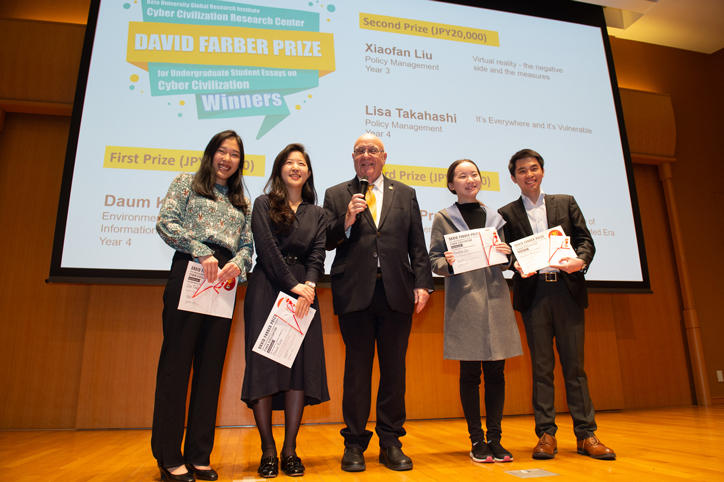 イベントでは、ファーバー教授が創設したデイビッド・ファーバー賞の授賞式も行われました。この賞は、慶應義塾大学の学生を対象に情報技術と社会の相互作用に関する小論文を募集し、優れた作品に賞が授与されるものです。
