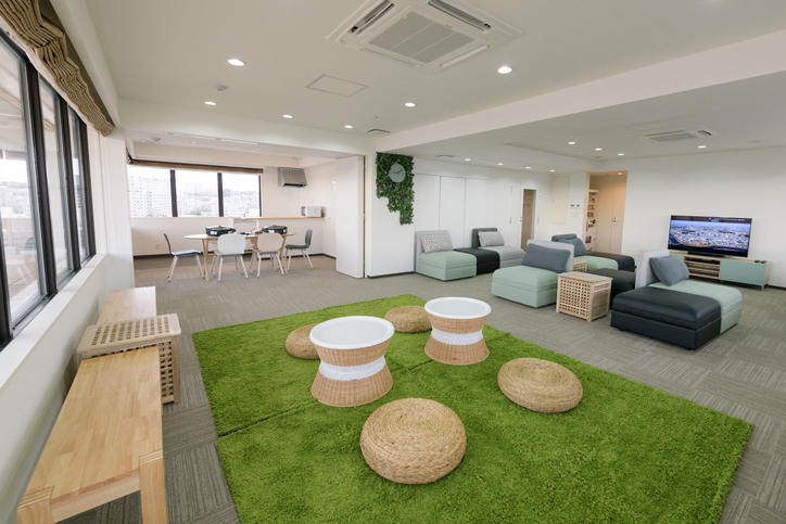 綱島SST国際学生寮は、パナソニックの事業所跡地に開発された次世代都市型スマートシティ「Tsunashimaサスティナブル・スマートタウン(綱島SST)」内に新設された、地上9階建ての混住型国際学生寮で、留学生用居室82室と日本人学生用居室81室の計163室の個室タイプを擁しています。食事の提供はありませんが、共用キッチンダイニングが用意されています。9階のフリースペースからは街全体を見渡すことができ、寮生同士のコミュニケーションの場として活用できます。また、寮内の電力はタウン内のエネルギーセンターから供給され、一部を太陽光発電で補っているのも、綱島SSTならではの特色です。今後、1階のタウンマネジメントセンターのエクスチェンジスタジオは綱島SSTラボの拠点となる予定で、革新的な実証実験を通して、パナソニックと慶應義塾大学、地域との共同研究拠点としても期待されます。