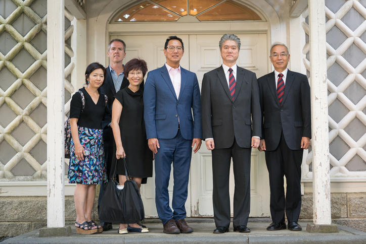 その後、オノ学長は信濃町キャンパスを訪れ、竹内勤常任理事、天谷雅行医学部長、北川雄光病院長の案内で、大学病院や最先端の研究施設などを見学しました。続いて、三田キャンパスでは、大森正仁常任理事らとともに、重要文化財である三田演説館などを巡りました。