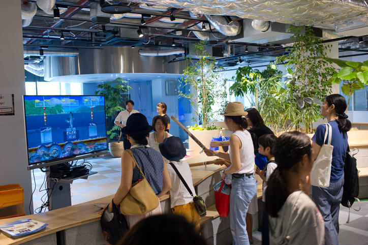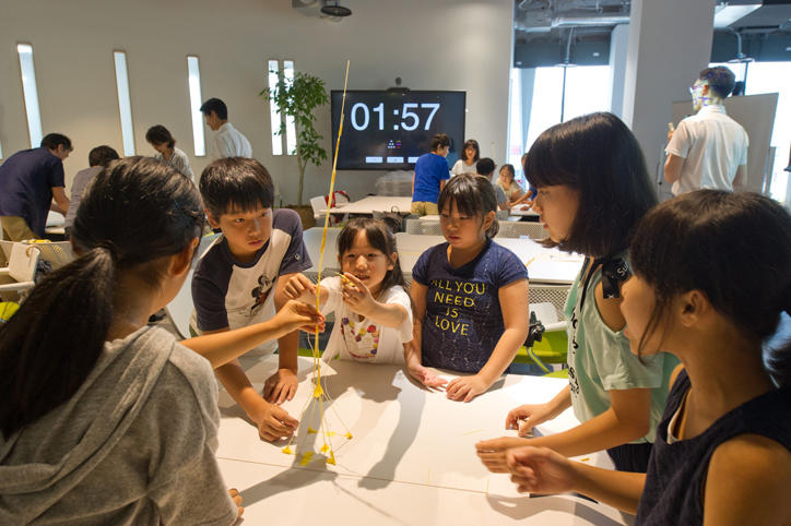 殿町タウンキャンパスでは、パスタとマシュマロでどれだけ高いタワーを作れるかをチームで競う「マシュマロチャレンジ頂上作戦」、魚つりゲームのプログラミング教室「魚つりゲームが社会に役立つ!?」、姿勢を計測しヘルスケアウェルビーイングに役立てる「かんたん姿勢計測『ケアピット』!!」の3つのブースが出展されました。参加した子どもたちは、いきいきとした表情でアイディアを出し合いゲームに取り組んだり、自分たちの姿勢の計測結果を真剣な表情で見たりしていました。