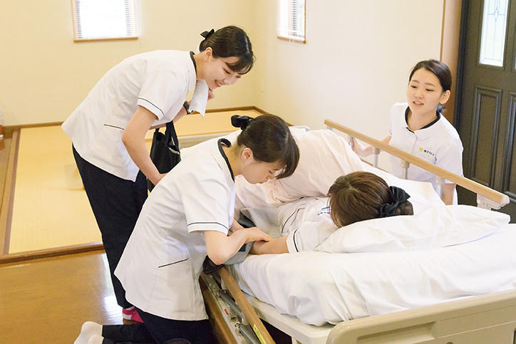 看護医療学部では、湘南藤沢キャンパス看護医療学部校舎や信濃町キャンパスの孝養舎で、看護の技術を身につけるためにさまざまな実習が行われています。その中から例年6月に行われている在宅看護実践と小児看護演習の実習の様子を写真で紹介します。
