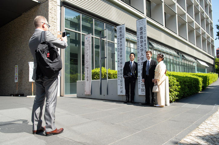 晴天に恵まれた三田キャンパスは、新たな学生生活を迎える新入生たちで和やかな雰囲気に包まれました。