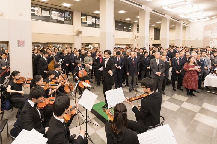 式典終了後は、会場を学生食堂ホールに移して「新年名刺交換会」が行われ、賑やかに新年の挨拶が交わされました。