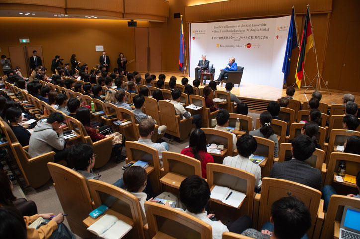 2月5日(火)、アンゲラ・メルケル ドイツ連邦共和国首相が、学生と対話を行うため、慶應義塾大学三田キャンパス北館ホールを訪れ、満員の会場では、集まった学生たちから万雷の拍手で迎えられました。