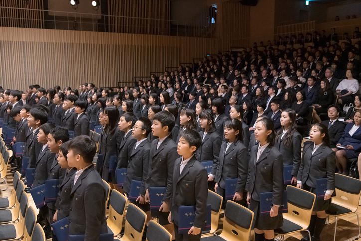 式は、出席者による「横浜初等部の歌」斉唱に始まり、近藤由紀彦横浜初等部長からの式辞、卒業証書授与に続き、大森正仁常任理事から卒業生に祝辞が述べられました。最後に、卒業生が「この丘に」を斉唱し、式は締めくくられました。