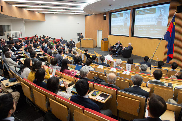 3月20日(水)、三田キャンパスにて、ノーベル経済学賞受賞者のロバート・エングル氏(2003年受賞)、ピーター・ダイアモンド氏(2010年受賞)を招き、経済学部・経済研究所・経済学会の主催で福澤諭吉記念経済学特別講義「21世紀の経済学:人口減少・高齢化、地球温暖化とどう向き合うか」が開催されました。
