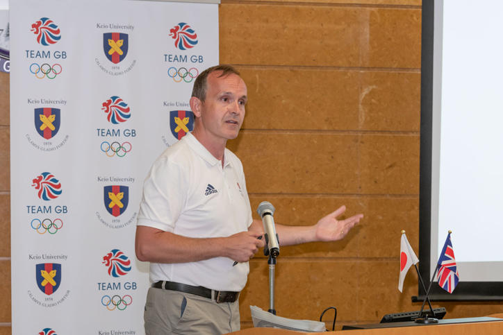 病院の見学後、総合医科学研究棟1階ラウンジにおいて、医学部との合同セミナーが開催されました。スポーツ医学研究センターの石田浩之教授の司会のもと、天谷雅行医学部長が医学部・病院の紹介を行い、英国代表チームパフォーマンスサービス責任者のグレッグ・レッター氏が英国代表チームのオリンピックへ向けた準備状況についての講演を行いました。続いて、英国代表チームの医療チーフであるニール・エリオット医師と慶應義塾大学精神・神経科の水島仁医師により、スポーツにおける脳震盪に関連した診断や管理、症例の研究などについての講演が行われました。セミナー後にはオリンピックを見据えた講演の内容についてBOA、BPAおよび医学部の教員、学生等の参加者による活発なディスカッションが行われました。
