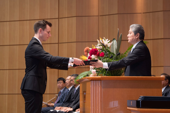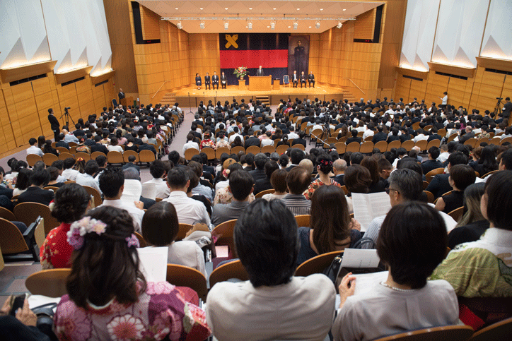 また、同日14時より、9月大学卒業式が同会場にて挙行されました。卒業生は合計263名(法学部106名、理工学部14名、総合政策学部68名、環境情報学部75名)でした。