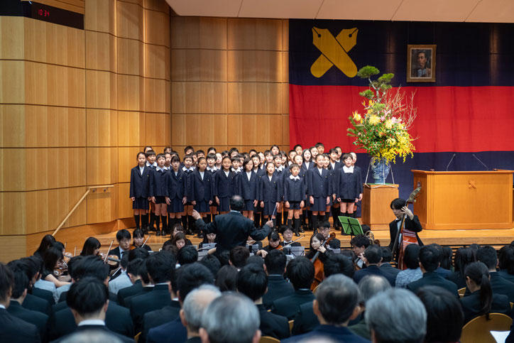 今年の式典は、幼稚舎生による「福澤諭吉ここに在り」、ワグネル・ソサィエティーによる「日本の誇」の2曲の合唱に始まり、続いて長谷山彰塾長から年頭の挨拶がありました。