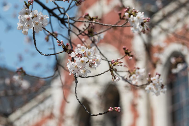 今年は3月半ば頃から桜の開花がはじまり、満開を迎えたあとに、新たな若葉が少しずつ芽吹き始めています。さわやかな青空のもと、色とりどりに咲く花たちも、各キャンパスに華やかさを添えています。