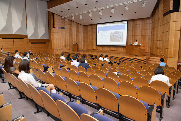 7月19日(日)、三田キャンパス西校舎ホールにて、慶應義塾一貫教育校派遣留学制度による2019年度派遣留学生の留学報告会が開催されました。参加者同士が距離を確保できるよう配慮しての開催となりました。