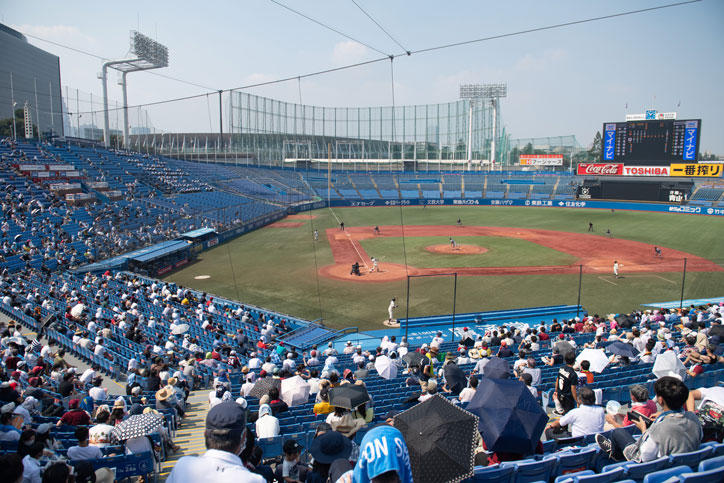 全勝同士の対決となった翌16日(日)の法政大学戦は3点を先制したものの4-7で敗れ、惜しくもリーグ連覇を逃しましたが、猛暑のなか最後まで戦い抜いた選手たちに観客席から温かい拍手が送られました。