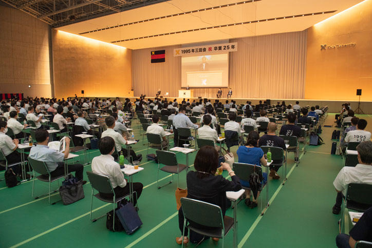当初予定していた卒業式での集まりに比べ小規模な開催となりましたが、参加者は学生時代とは様変わりした日吉キャンパスを背景に在学当時を思い起こし、旧友との再会を喜び合いました。
