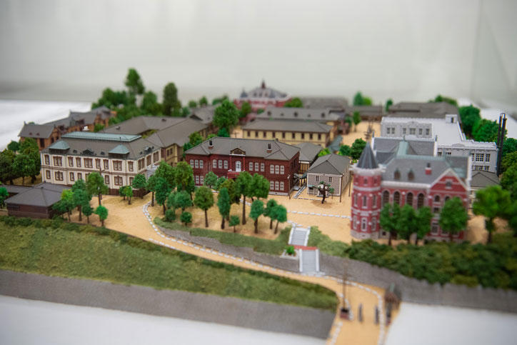 常設展示では、アメリカの写真館で撮影された若き日の福澤諭吉の写真や、福澤の著作物、早慶戦のきっかけとなった早稲田大学からの挑戦状や、学徒出陣で出征した学生の遺稿など、入れ替えながら常時100点以上の資料を紹介します。また、慶應義塾にゆかりのある人物を紹介するデジタルコンテンツや、およそ100年前の三田山上の様子を再現した模型なども置かれています。これらの常設展示に加え、年に数回程度特別展を開催する予定です。
