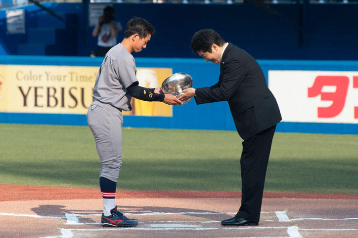 前週に、すでに優勝が確定していた野球部は、5月29日(土)と30日(日)にリーグ戦を締めくくる早慶戦に臨みました。29日(土)の1回戦では、早稲田大学に先制点を許すも4回表に3点を挙げ逆転に成功し、そのまま逃げ切り3‐2で勝利しました。続く30日(日)の2回戦でも早稲田大学を追う展開となり、最後まで好機を作り続けましたが及ばず、惜しくも2‐4で敗れました。