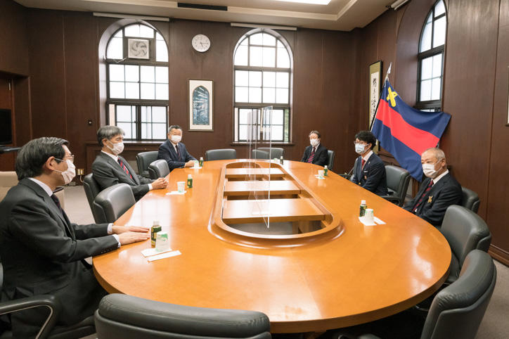 東京2020オリンピック・アーチェリー男子団体で銅メダルを獲得した武藤弘樹君(環境情報学部卒業、体育会洋弓部出身)が、8月20日(金)に伊藤公平塾長を表敬訪問しました。