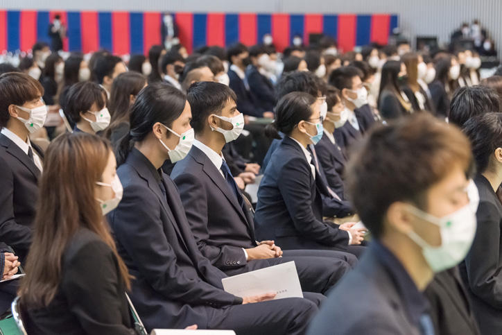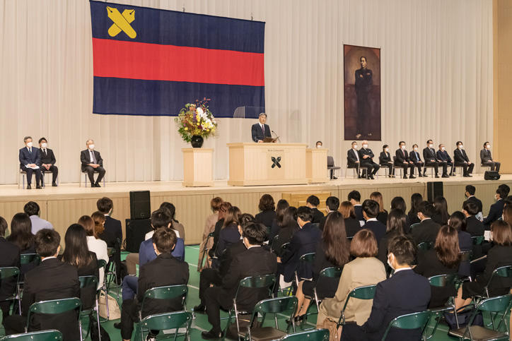 新型コロナウイルスの感染拡大防止に最大限配慮するため、式は参加者を新入生に限り、インターネットでのライブ配信も行いました。インターネット中継アーカイブ動画は下記よりご覧いただけます。