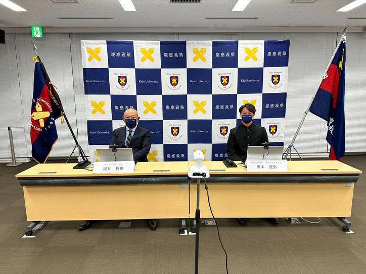 昨年に引き続き、新型コロナウイルス感染拡大防止のため、オンラインで記者会見を行いました。指名を受けた部員たちは堀井哲也監督とともに登壇し、指名の喜びや今後の意気込みなどを語りました。