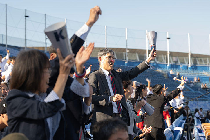 一勝一敗で迎えた早慶戦三回戦。序盤から慶應義塾がリードしていましたが、5回裏から7回裏にかけて早稲田大学の攻撃と両校選手の素晴らしいプレーが続き、球場が盛り上がりました。両校選手へ応援席からの応援も熱が入ります。白熱した試合展開の末、慶應義塾体育会野球部は5対3でリーグ優勝を果たしました。