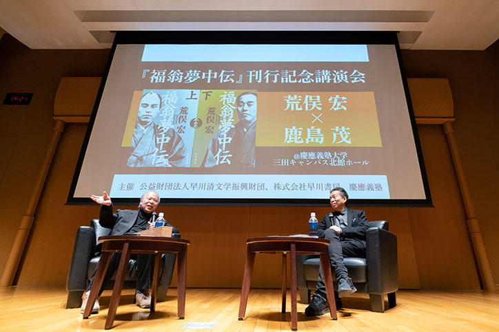 作家の塾員・荒俣宏さん(1970年法学部卒業)とフランス文学者で明治大学名誉教授の鹿島茂さんのトークイベントが、12月11日に慶應義塾大学三田キャンパス北館ホールで行われました。こちらは福澤諭吉の評伝小説『福翁夢中伝』(早川書房)を荒俣さんが刊行したことを記念し、公益財団法人早川清文学振興財団、株式会社早川書房、慶應義塾により開催されたものです。