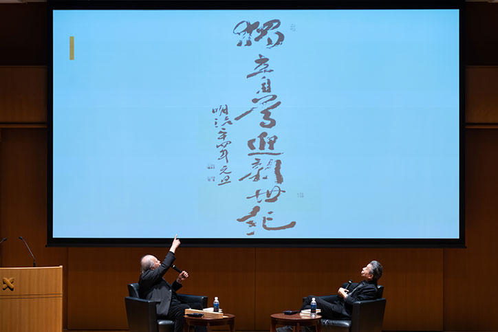 ブックコレクターとして古くから知り合いだった荒俣さんと鹿島さん。『福翁夢中伝』の見どころや解説にとどまらず、執筆時の秘話、また二人の出会いや共通点といった多岐にわたって軽快なトークが繰り広げられました。