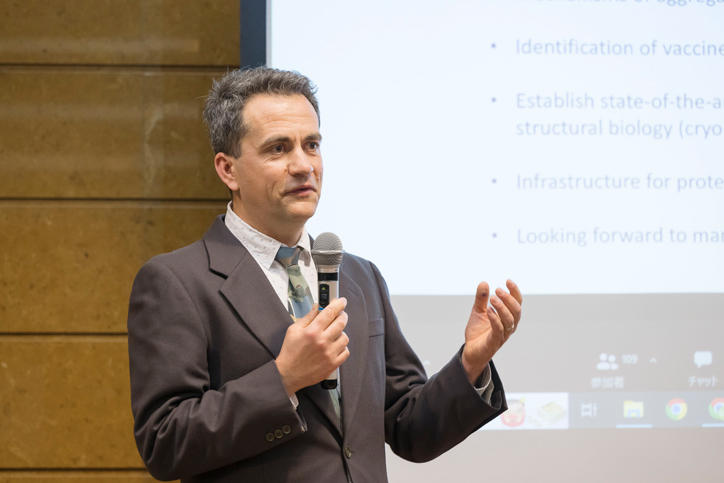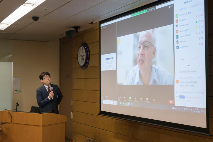 冒頭に日本学術振興会の宇川彰WPIプログラムディレクターからWPIにおけるBio2Qの位置づけをご紹介いただきました。その後、欧米・アジアの世界トップレベルの科学者を含む拠点の研究者9名による研究紹介、質疑応答がおこなわれました。