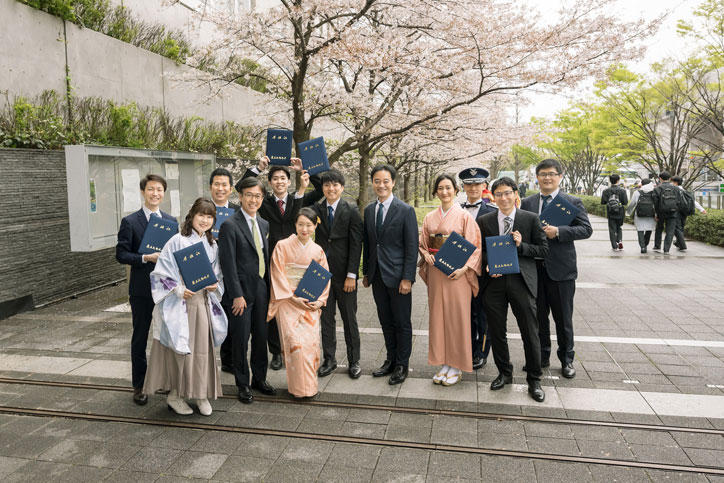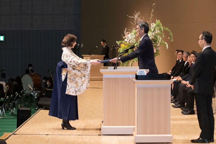また、3月28日(火)、大学院学位授与式が同会場にて挙行されました。今回の学位授与者数は14研究科合計1,582名(博士学位228名、修士学位1,221名、専門職学位133名)でした。