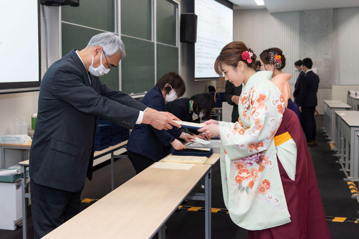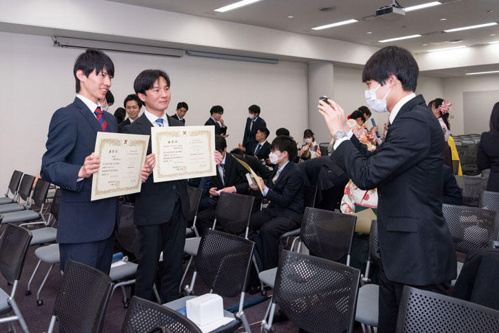 卒業式以外にも、学部別の学位記授与や小泉体育賞受賞者授与式、表彰学生授与式などが各会場に分かれて行われました。