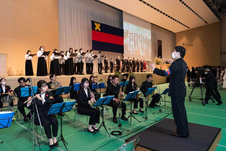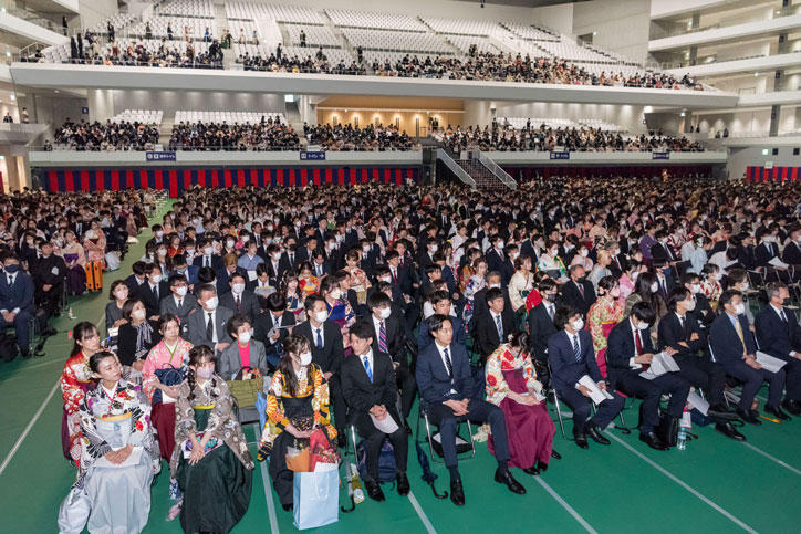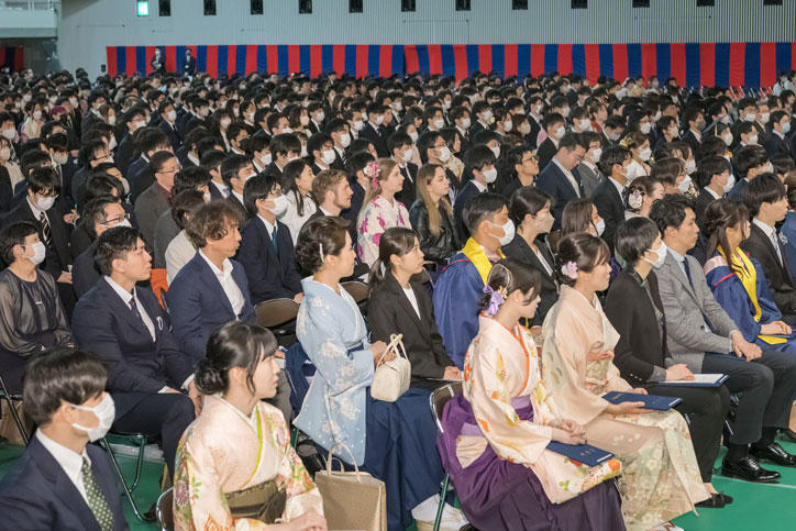 3月23日(木)、日吉記念館にて、2022年度大学学部卒業式が行われ、10学部合計6,220名(うち、通信教育課程303名)の卒業生が新たな門出を迎えました。今回も参加者を卒業生と一部の関係者に限り、式典の様子はインターネットで配信されました。
