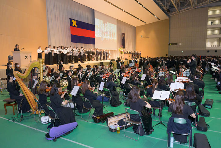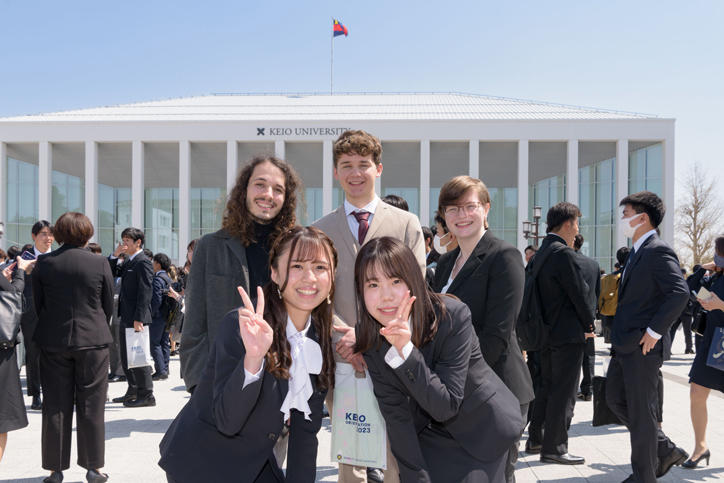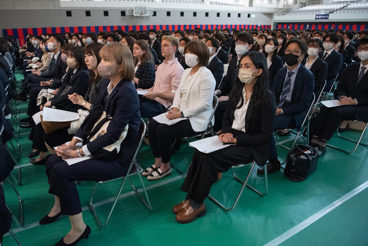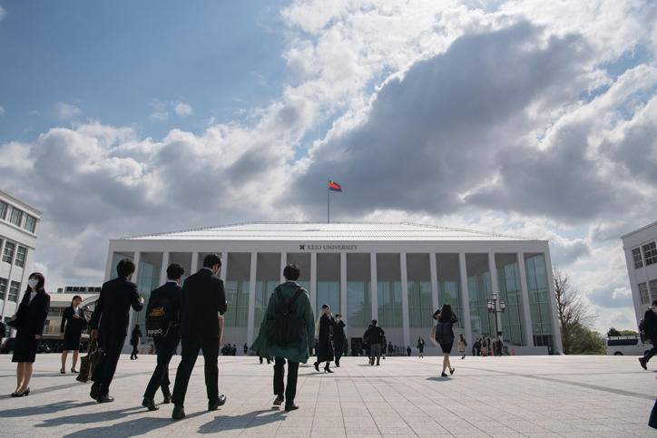 4月1日(土)、2023年度大学学部入学式が日吉記念館で行われ、別科・日本語研修課程を含む10学部合計6,451名の新入生を迎えました。式は参加者を新入生と一部の関係者に限り、式典の様子はインターネットで配信されました。
