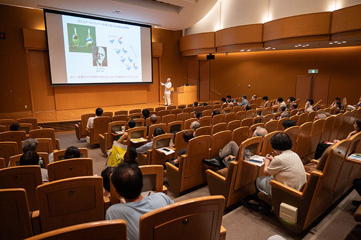 講演では、美の判断と道徳の判断については似たところがあり、どちらも素早く判断できること、そして人間固有のものだと考えられていることに触れ、人間以外の動物の美的判断や道徳判断に類似した行動を説明しました。また、近年動物たちにも「共感」が見られることが分かり、「道徳の起源」としての共感について解説しました。自分と他者を比較することから生じる不公平嫌悪、社会的相対比較は必ずしも合理的でない行動を生み出すことにも触れました。最後には人間の「不合理な行動の起源」について参加者も考える大変貴重な機会となりました。