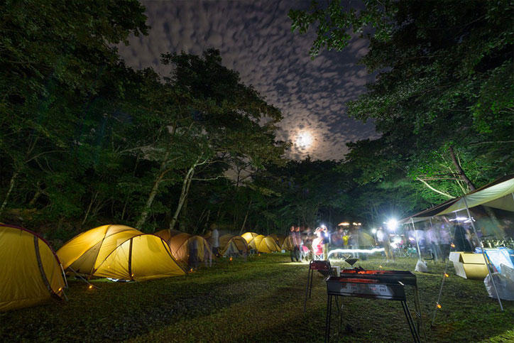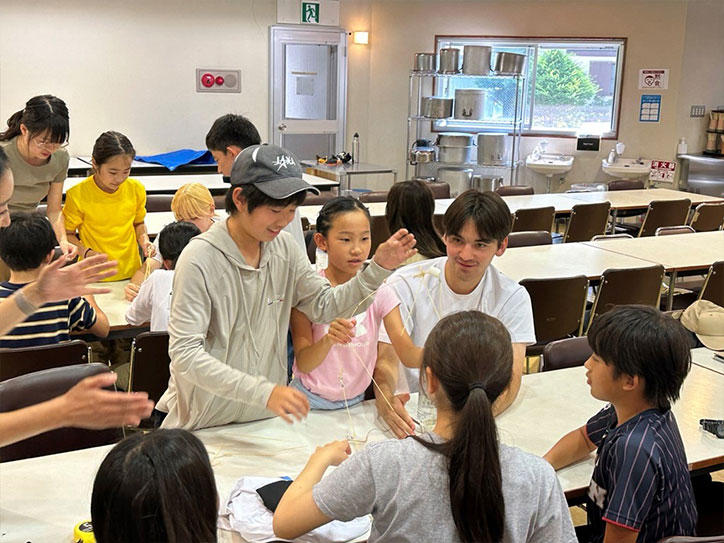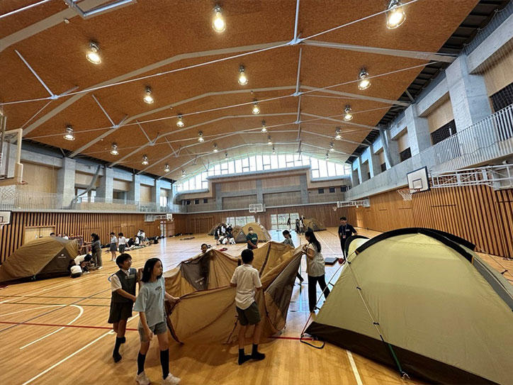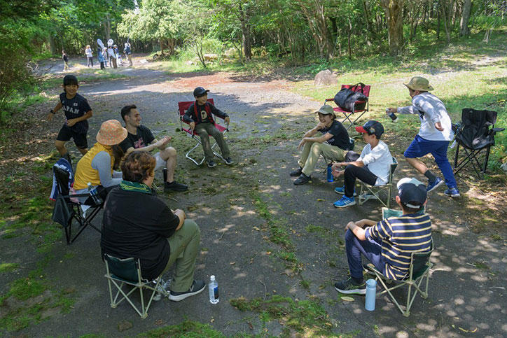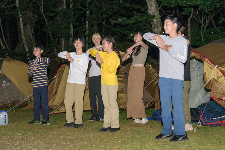 参加者の相互理解や各自の目標の共有、テント設営など、キャンプ実施に必要な知識や技能を身につけるための事前ワークショップを7月8日(土)に横浜初等部で実施した上で当日を迎えました。キャンプには横浜初等部から19名、湘南藤沢中・高等部から6名、大学院システムデザイン・マネジメント研究科(SDM研究科)から5名(うち留学生2名)、そして、海外の大学からの留学生3名、大学公認団体「ローバースカウト」の学生3名の計36名の学生が参加し、それぞれの組織の教職員も含めた約50名でさまざまな取り組みを実施しました。