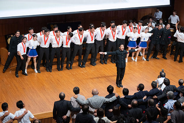 應援三部によるスペシャルステージは大いに盛り上がり、若き血斉唱では、この夏、大声援を受けた選手らも肩を組み、楽しそうに歌う姿が見られ、終始和やかな会となりました。