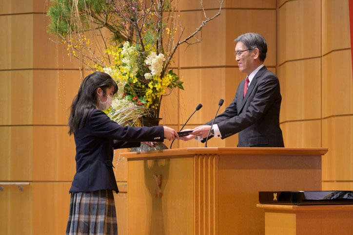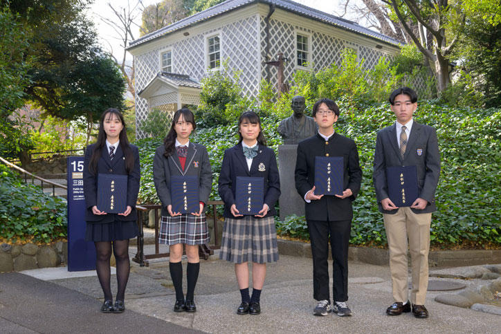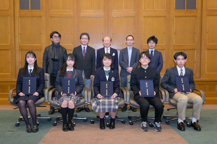 1月10日(水)に開催された第189回福澤先生誕生記念会で、第48回小泉信三賞全国高校生小論文コンテストの表彰が行われ、受賞者には伊藤公平塾長から表彰状が授与されました。記念会終了後には、受賞者を囲んで審査委員など関係者による恒例の懇親会が開催されました。小論文を書こうと思ったきっかけなど、審査委員と受賞者が直接交流できる貴重な機会となりました。