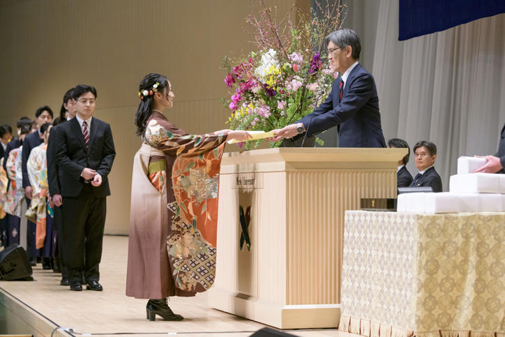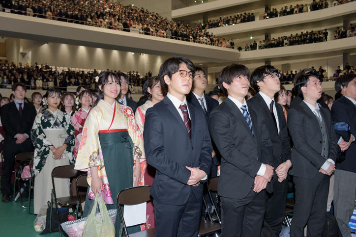 翌3月26日(火)には、大学院学位授与式が同会場にて挙行されました。今回の学位授与者数は14研究科合計1,478名(博士学位195名、修士学位1,130名、専門職学位153名)でした。