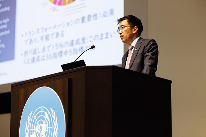 3月1日、SFC研究所xSDG・ラボは、国際連合大学との共催シンポジウム「GSDR 2023とSDGs-2030アジェンダ後半のビジネス変革に向けて」を開催しました。国連大学ウ・タント国際会議場にて日英同時通訳付きで行われたシンポジウムでは、持続可能な開発に関するグローバル・レポート(GSDR)2023が提供する洞察について掘り下げ、SDGsの達成に向けた企業の役割について活発な議論が交わされました。