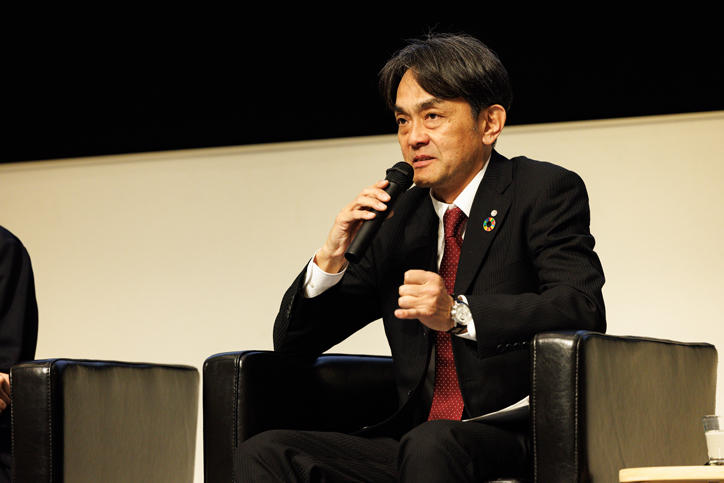 パネルディスカッションは国谷裕子政策・メディア研究科特別招聘教授をモデレーターに日本の著名なビジネスリーダーが参加し、経営目標とESGの関連性、特に事業の成長と社会課題の解決をどう両立していくかについて議論しました。日本航空株式会社の青木紀将氏、トヨタ自動車株式会社の大塚友美氏、シティグループ証券株式会社の藏原文秋氏、株式会社リコーの鈴木美佳子氏が、それぞれの組織のSDGsに関する事例をあげながら、さらなる変革に向け今後どのように貢献していくかについて洞察を共有しました。