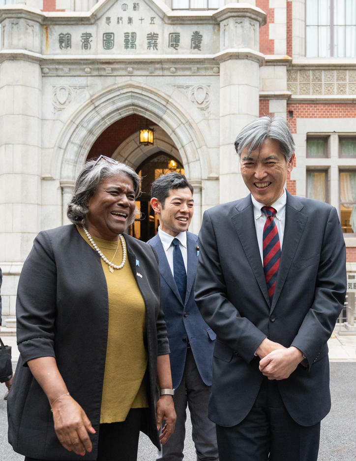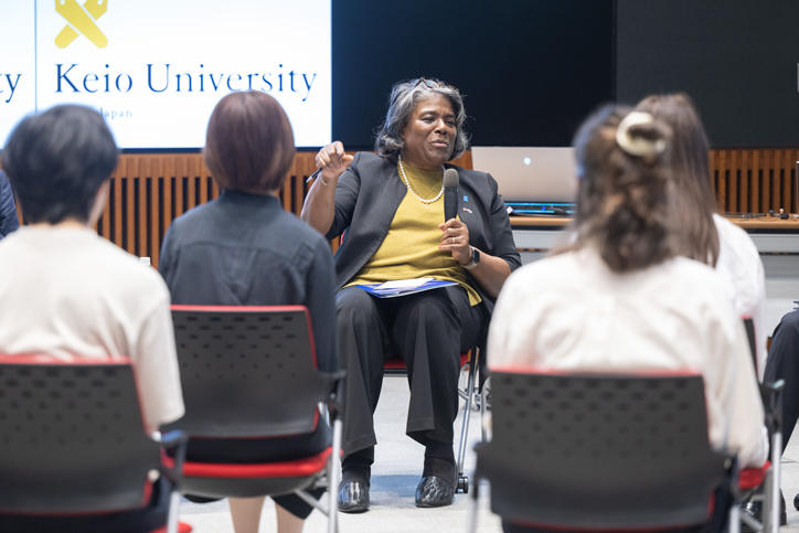 今回のトーマスグリーンフィールド国連大使との交流セッションは、本学でのAI関連研究について学生たちの生の声を聞きたい、という同大使の意向を受けて実現したものです。