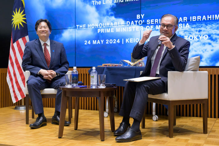 5月24日、慶應義塾大学は三田キャンパスにて、マレーシアのアンワル・イブラヒム首相による講演会「A Feast of Civilisations: The Life and Mind of Toshihiko Izutsu」を開催しました。本講演会には、マレーシア首相府関係者、駐日マレーシア大使館関係者をはじめ、慶應義塾からは土屋大洋常任理事ほか学生・教職員など約130名が参加しました。