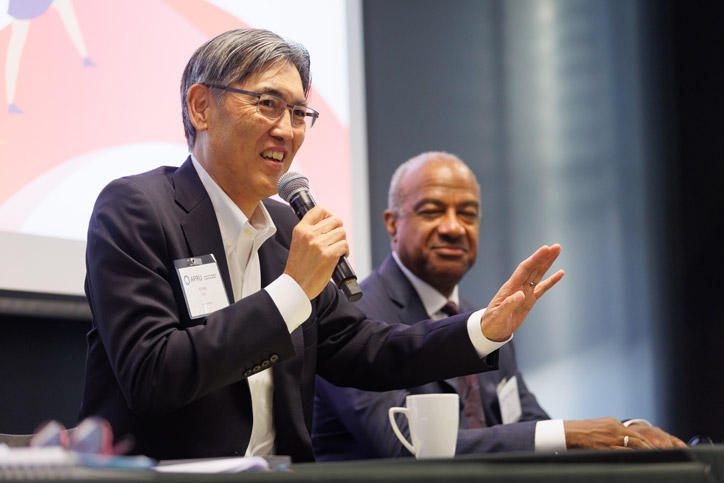 また、年次学長会議に先がけて、6月23日には、APWiL (Asia Pacific Women in Leadership) In-Person Summitが開催され、伊藤塾長、奥田常任理事が参加しました。同プログラムに参加したメンバー大学のメンターおよびメンティー経験者(当学からも教員1名が参加)を含む60名以上が参集した本会議において、伊藤塾長はパネルディスカッション“The Role of University Leadership in Advancing Gender Equity”にパネリストとして登壇し、ジェンダー平等に関する取り組みを紹介するとともに、より効果的な推進のため組織のリーダーが果たすべき役割について他の登壇者と議論を交わしました。奥田常任理事は、キーノートセッション“A Conversation on Driving Change Towards Gender Equality”にモデレーター兼スピーカーとして登壇し、社会とともに変化するダイバーシティ・エクイティ&インクルージョン(DEI)の今後のあり方について他の登壇者と意見を交換しました。
