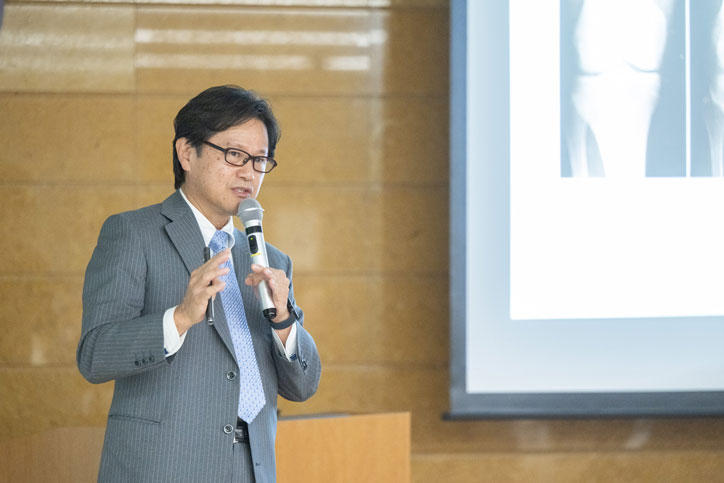 講演では、アカデミアと企業のサイエンスナレッジ・データ基盤を活用して展開される異分野融合研究や、そこで創出される様々なセンシング技術やAI解析によるアルゴリズムなどについて紹介がありました。医療・介護・ヘルスケアをシームレスに結び、治療後の悩みを抱える個人・家族が必要な時に適切なところに繋がること。そして、繋がることで、見守られ、安心と生きがいを持って、自身の生活を豊かに暮らせるヘルスコモンズ共生社会の実現を目指したいという中村教授の講演を、参加者は皆熱心に聴講し、活発な質疑応答が行われました。