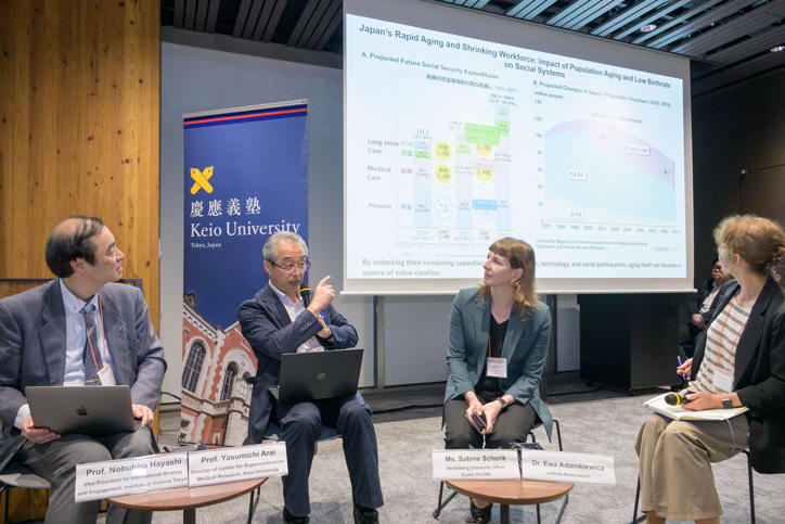 シンポジウムでは、参加者は複数のパネルディスカッションやポスターセッションを通じて、健康的な高齢化に向けた革新的な解決策や国際的な連携戦略について議論し、分野の垣根を越えて交流しました。本学からは、新井康通百寿総合研究センター長/教授、小熊祐子スポーツ医学研究センター副所長/教授、佐々木貴史百寿総合研究センター特任准教授がパネリストとして登壇しました。