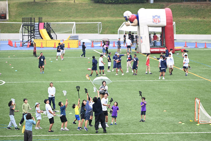 キッズ向けには「SASUKE」のKIDS版体験会やオリンピック選手と一緒に楽しめるフェンシングや陸上の体験会、ラクロスやフラッグフットボール、ピックルボールといった普段なかなかできないスポーツ体験が多数用意され、多くの親子連れで賑わいました。来往舎イベントテラスには、宮大工の棟梁によって伝統建築技術を駆使した「モバイル茶室」が組み立てられ、木のぬくもりに満ちた茶室でたてられたお茶を楽しむ人々の様子がみられました。その他にも藤原洋記念ホールでのJazz & Popsのコンサート、第4校舎や独立館での講演会、小学生向け「きかくのがっこう」など、魅力的なプログラムが多数開催されました。